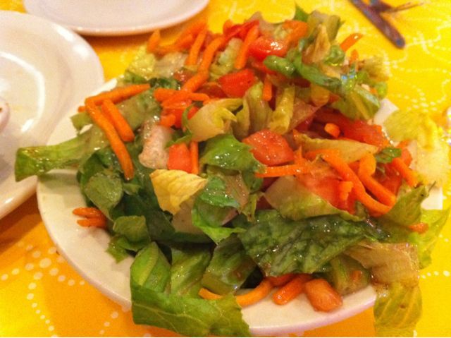 Take a look at that salad. Your eyes do not deceive you. I do not know how it is possible to make a salad greasy, but they found a way.