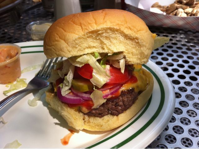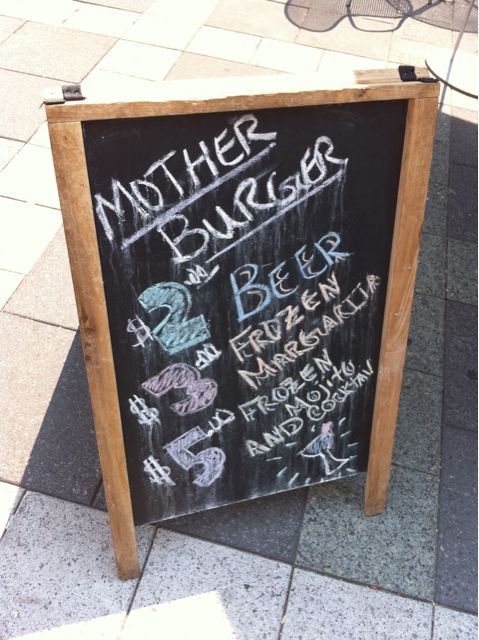 Mother Burger suffers from one huge problem: it is absolutely swarmed with pigeons. I was afraid my meal was going to get its own special sauce from a more avian source. Yikes. A consequence of all those peanuts lying around, is my guess. Also, numerous tables are tucked under trees.