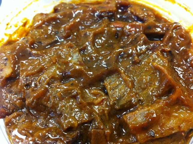 The biggest difficulty is that it’s build-it-yourself. They send you from the cart with a bun, a plastic container of warm beef, some onions and pickles. Some assembly required. Unless you eat a bit of the beef before attempting to stack it all onto the sesame seed roll, your roll with runneth over. As it did for me. First, though, I stirred in the onions.