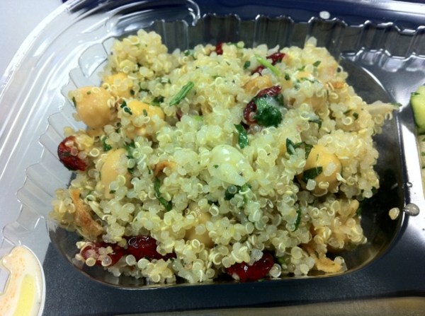 The Quinoa salad was delightful. The bits of cranberry added a sweet to the flavor, and the chickpeas were also tasty.
