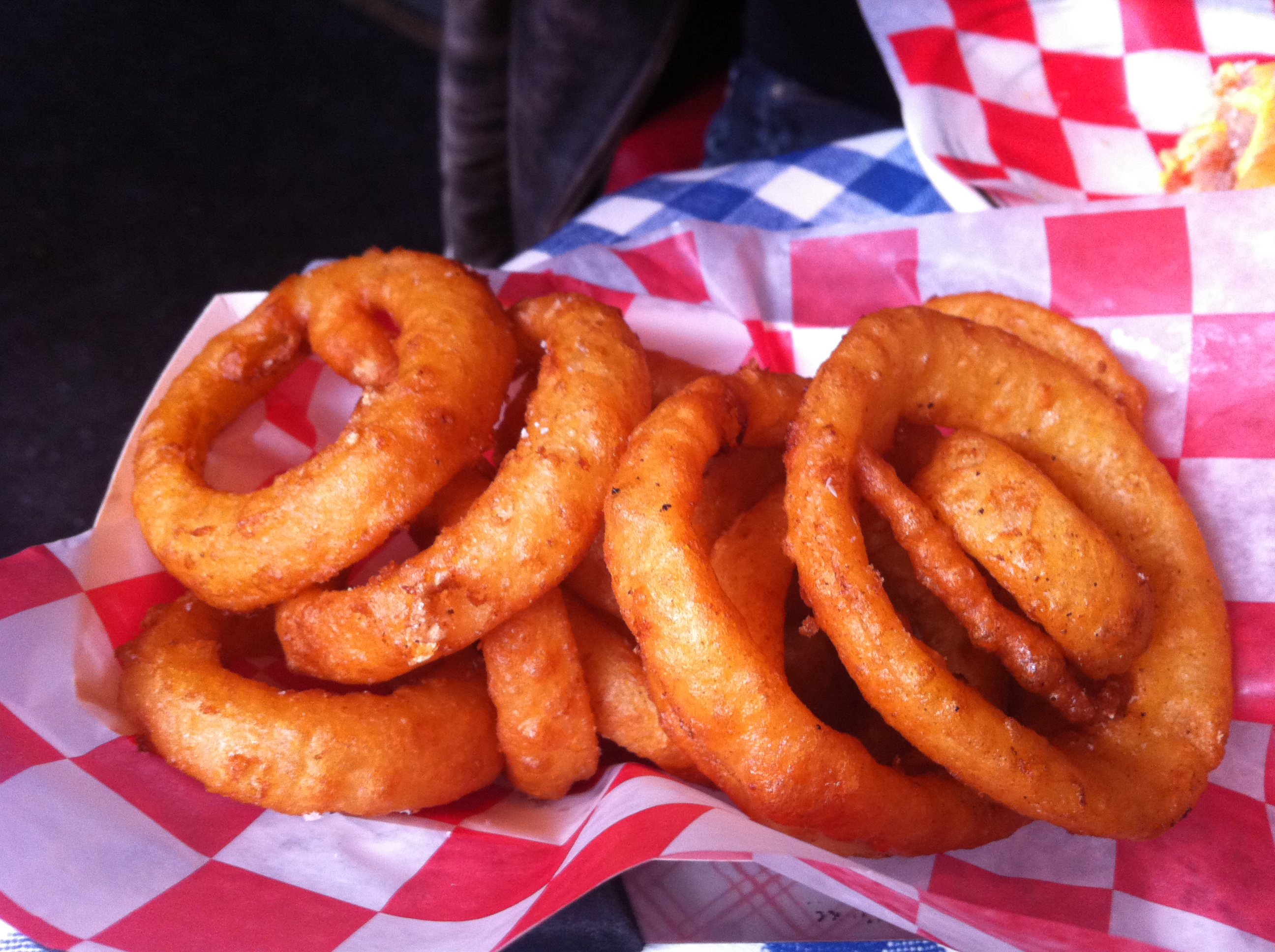 The onion rings were also surprisingly good, despite their threatening “fresh from the grocer’s freezer” look. The beer battering was crunchy and rich.