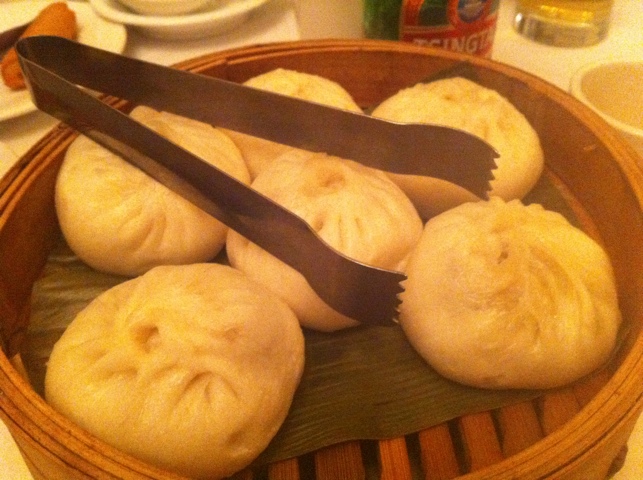 As you can see, the wrapper (or bun) portion of the dumpling is a bit thicker and doughier, but also quite rich as a result from all that devil white flour. The meat preparation inside is quite fresh, with a savory flavor that cuts into the sweet of the bun and complements it. The shredded greens mixed into the meat also help mellow the flavor. But the overall tone is sweet.