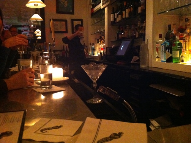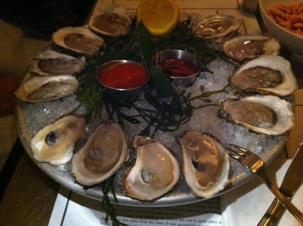 The bartender, who was a real “mixologist,” as they go by these days (I suppose), was very friendly and poured a mean martini. Delicious. As we waited for a table, we ordered a dozen oysters to start. The selection is fairly limited – about six varieties, I believe – but nonetheless delicious. The barman informed us that the Mermaid Inn has created an Oysterpedia App for iPhones. I’ve yet to download it, though it seems promising.