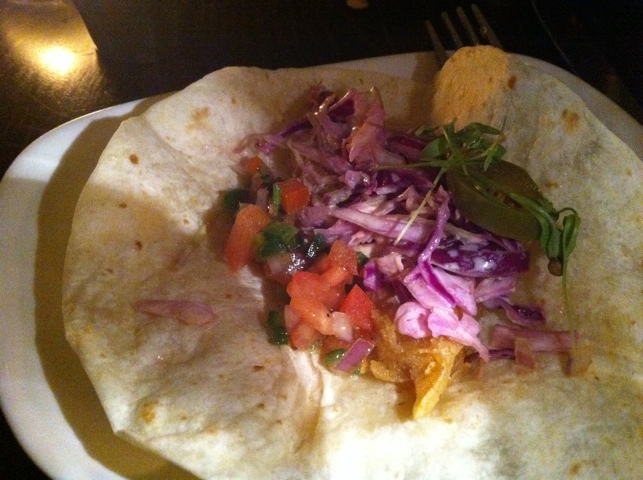 The biggest disappointment, however, was the fish taco. I thought it was terrific they had them available, especially you can tell them precisely how many you want and they charge you per piece. I ordered two, envisioning fresh fish, pico de gallo and so forth. I was disappointed. The fish was battered and fried, making it heavier. I am guessing that is some sort of concession to the winter weather, and people feeling the need for comfort food, but the tortilla adds a fat as it is, and I really like delicious fresh fish. Why did they fry it? I don’t know. I should also mention they made a huge blunder by serving the taco overly warm. By serving it on the warmer (as opposed to room temperature or faintly warm) side, it hardened a bit. It too didn’t seem fresh as a result.