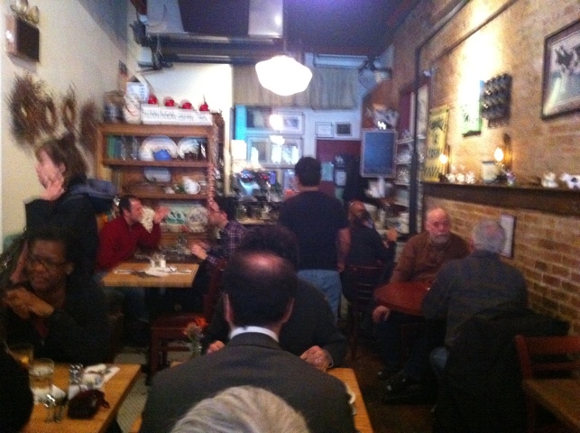 It’s not the decor, which is frankly cramped and filled with tippy small tables and bumpy passersby trying to get past other customers’ chairs.