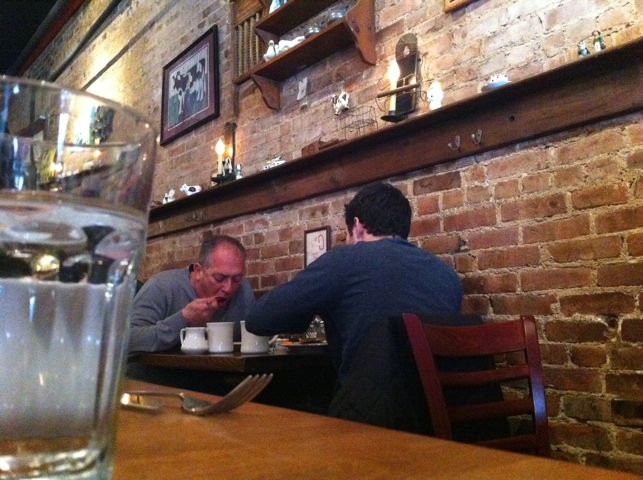 Even for a midweek lunch, the place was crowded. I keep wondering what their secret is. It’s not the price: the place ain’t cheap. Something like $10 or so for most of their breakfast fare (they are known for their breakfast comfort food staples, like pancakes and waffles and such).