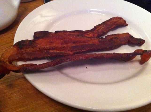 The crispy bacon I found to be overdone. It had all the life cooked out of it. One can reasonably argue that by ordering it crispy, we were asking for trouble, and that would be a fair point. I am a fan of non-crispy bacon, but the wife likes it that way, so you do run the risk.