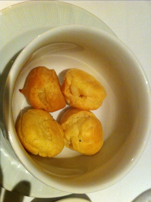 You’ve got to love a restaurant that starts with a tasty amuse bouche. I know, I’m easy, what can I say. But a delicious amuse bouche makes so much sense to me as a way to start off a delightful: it says “Wake up! Delicious food is coming!” Ours was a cheddar cheese puff. It was very mild and warm.
