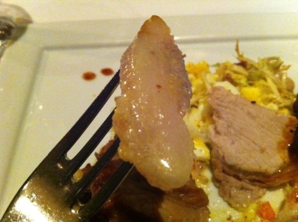 We then sampled the lobster bolognese, and at this point I was beginning to notice something in common with the other dishes: a sour theme! The lobster bolognese had a very sour attack when you bit into it, which I couldn’t quite understand. After the initial sour blast came a heartiness lent by the spaghetti and rich lobster.