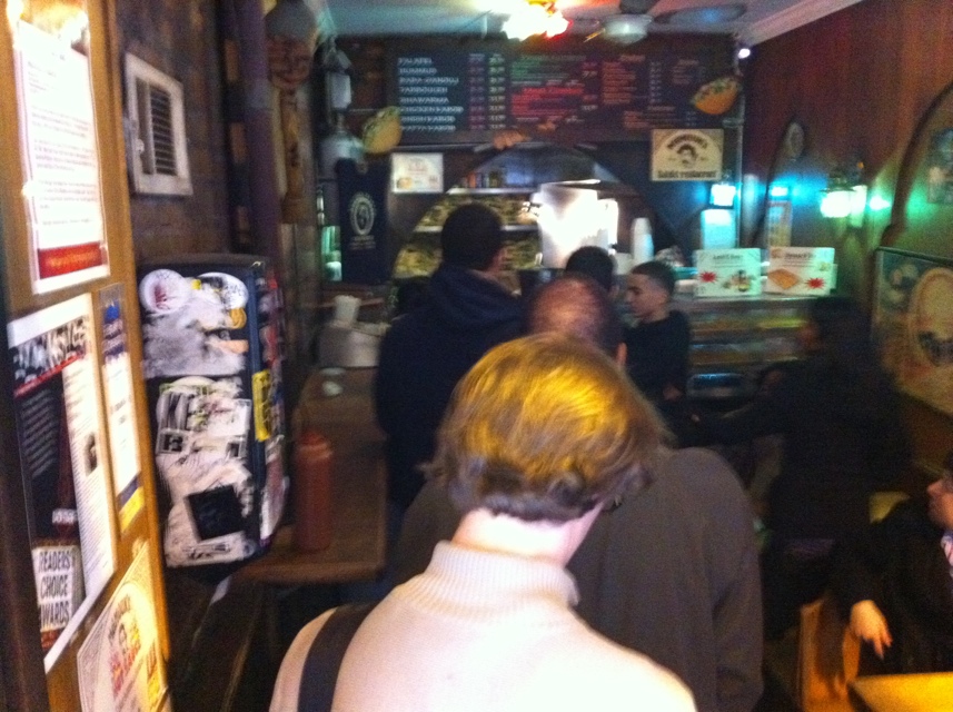 Look, Mamoun’s is no Taim, which serves up extremely choice falafel. Taim’s are almost dainty and delicate. Mamoun’s is rugged, workmanlike and simple. They seem to me to be hitting right in the falafel wheelhouse at a very inexpensive price. They ask just one more thing from you: willingness to wait on a line and not being rattled as people brush past you getting in and out of the cramped space.