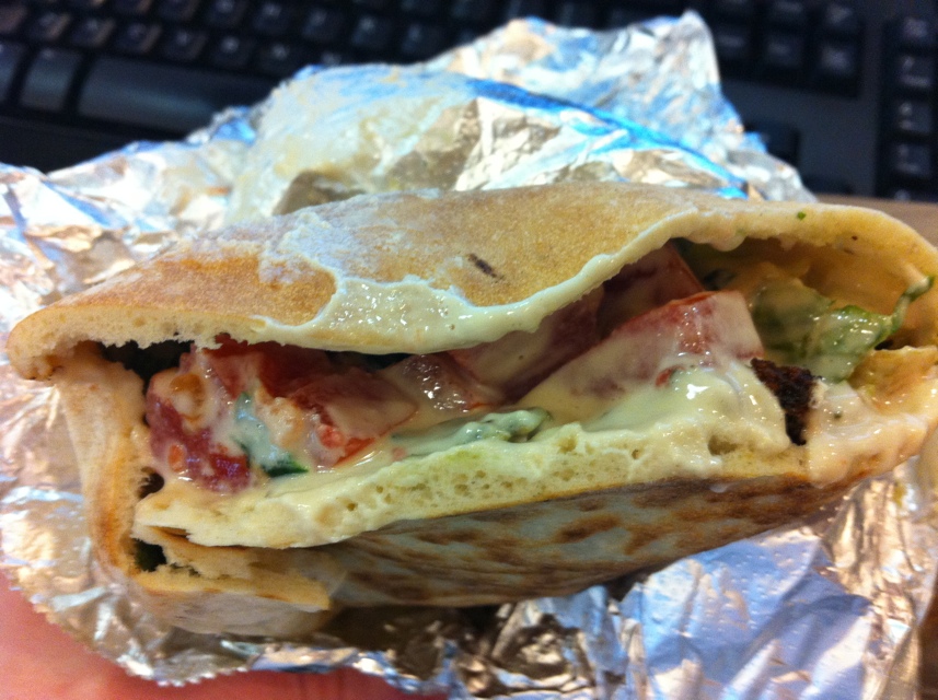 You get a number of crunchy falafel balls, a spritz of tahini, plenty of lettuce and some tomatoes. The falafel has a very faint peppery spiciness that brings in the lowest of low sizzles to the tongue. But if, as Hugh says, money has an aftertaste, then savings has a taste, and you get it with each bite of Mamoun’s falafel. Considering that a slice of pizza is probably much less healthy, and likely much less tasty, Mamoun’s is a solid deal.