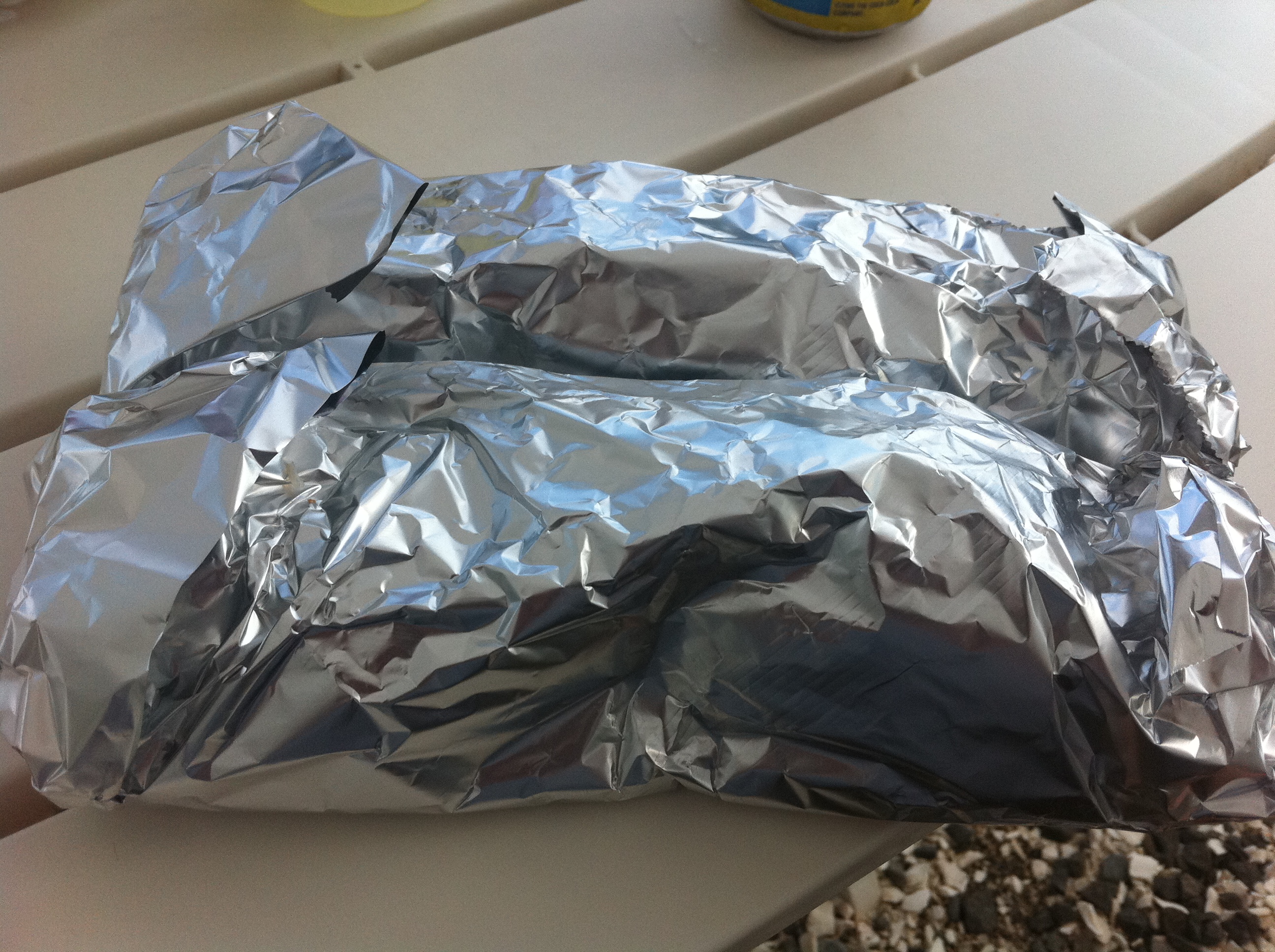 The waitresses dutifully delivered (after a time) two tinfoil packets. They were quite hot. They were also quite a bit longer than I had expected. While you can’t tell from that photo, I’d say each was about a foot long.