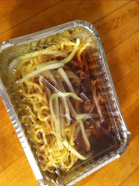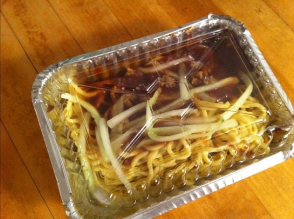 I received my order, and those noodles, those precious noodles, had changed. Gone was their tan, peanut-y color. Instead, there was a mass of brown sludge atop the bed of noodles.