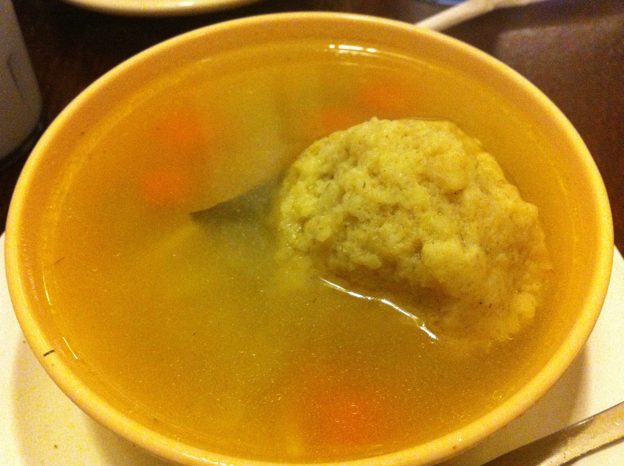 Also let us take a moment to reflect on their matzoh ball soup, and Community Restaurant, I want you to pay special attention. At Eisenberg’s, which does not shy away from being a greasy spoon-type joint, you are served your portion in a cheap plastic bowl with a dingy tin-feeling spoon. The broth is a bit too salty, though there’s plenty of carrots and celery. It seems a bit greasy, but not unforgiveably so. The broth is far and away better at Community, easily. However, the Eisenberg’s matzoh ball is terrific. There are two types of matzoh balls: sinkers and floaters. Both are delicious, but my heart belongs to floaters. Eisenberg’s delivered in style. Light and fluffy, like a dumpling. Marvelous.