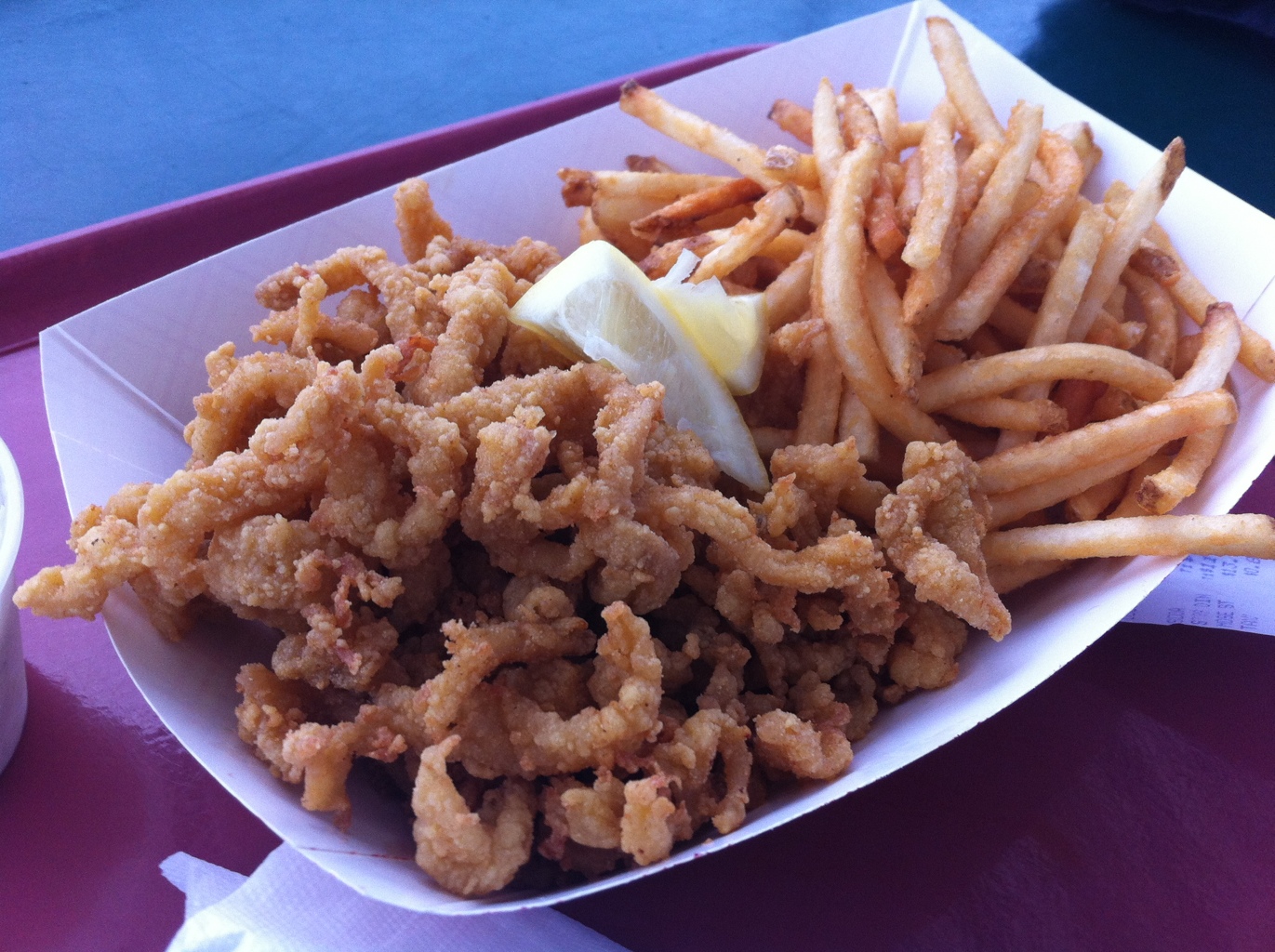 They were agreeable indeed, very much what you think they are: breaded clam strips. Crunchy but not to the point of having lost all of their clam meat within. Flavorful without being fishy. Crunchy and not greasy. Very pleasant and on balance wonderful clam strips. However, I do not know that they make for destination dining the same way the Hot Lob does. They are delightful for scratching your fried food itch, and I think I rate them better than most clam strips I’ve had, fresher perhaps, but nonetheless it is a deep-fried thing you dip in tartar sauce.