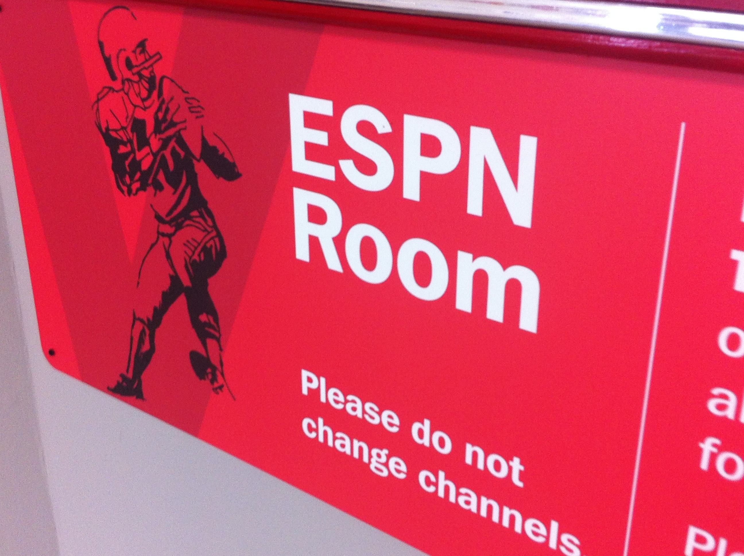 Another word about the place. It is a sprawling affair. There are several different rooms with mounted TVs pointed at dedicated channels. There’s a Golf Channel room, a CNN room, a Fox News room, and so on.