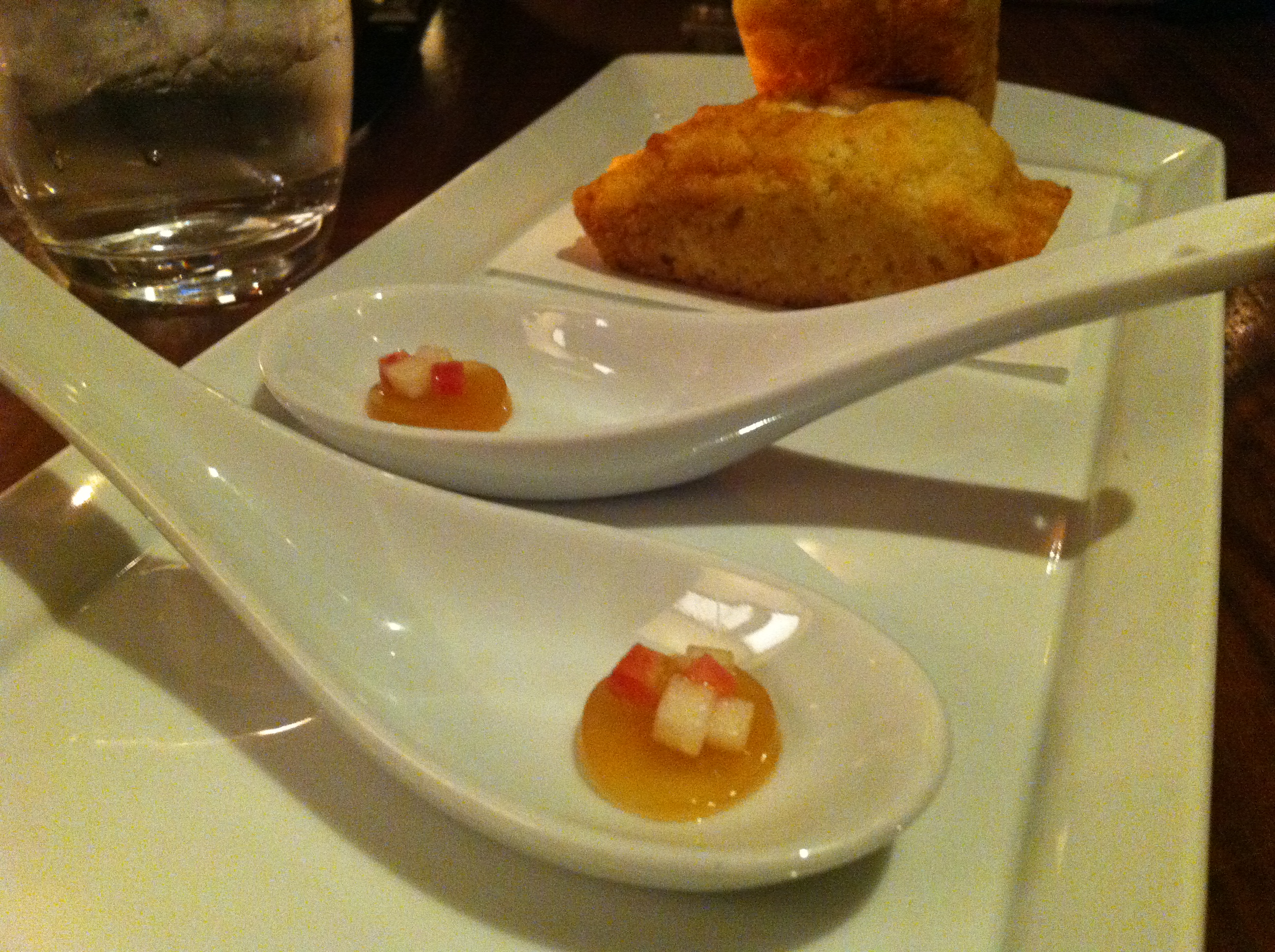 On our most recent occasion we were served an apple-based amuse bouche and some cornbread. The apple gelee was crisp and a terrific palette cleanser. Once again, another fantastic start at Dovetail.